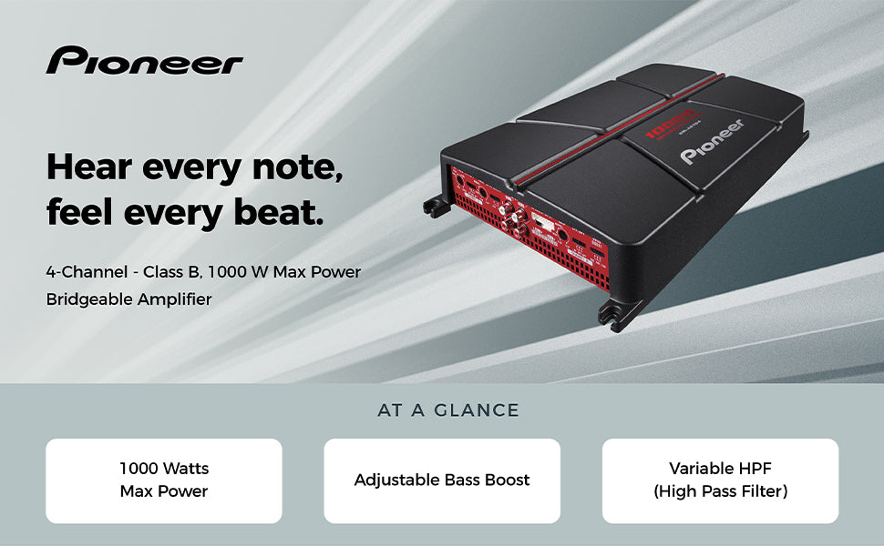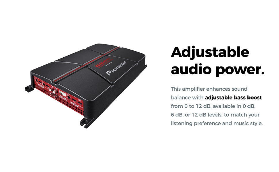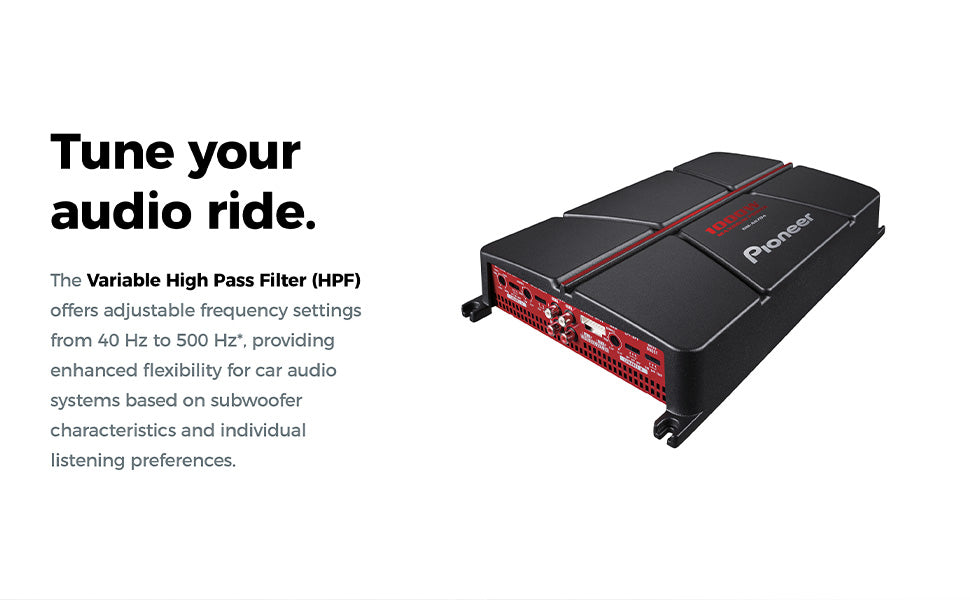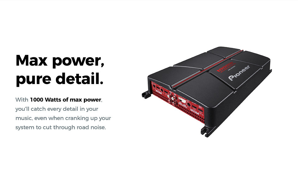 Pour éviter de mauvaises performances des basses dans des situations exigeantes telles que des basses soutenues ou de la musique ayant une plage dynamique élevée, Pioneer a conçu une alimentation de haute qualité pour répondre aux besoins de puissance constants. Cette conception améliore les performances audios en vous offrant un meilleur rapport signal/bruit, une meilleure dynamique transitoire audio, des basses soutenues lorsque cela est nécessaire et, plus important encore, elle vous offre un trajet agréable en voiture!