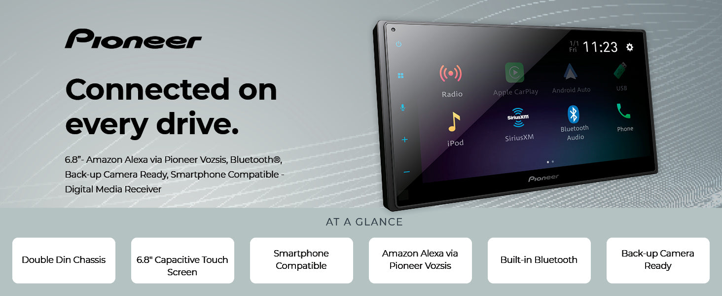 6.8"- Amazon Alexa via Pioneer Vozsis, Bluetooth®, Back-up Camera Ready, Smartphone Compatible - Digital Media Receiver