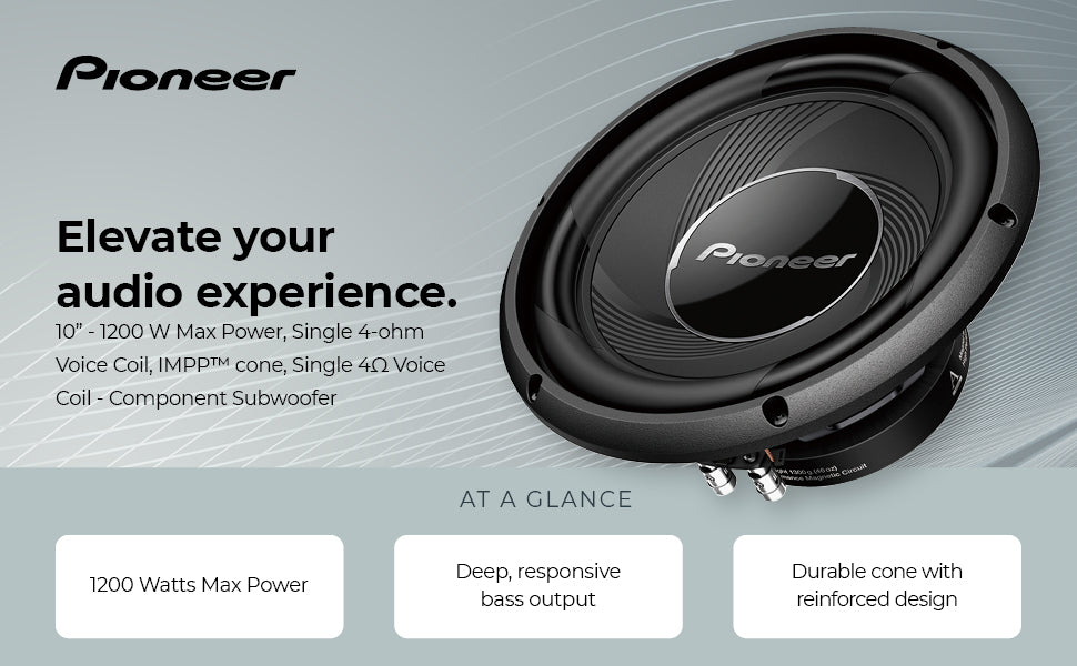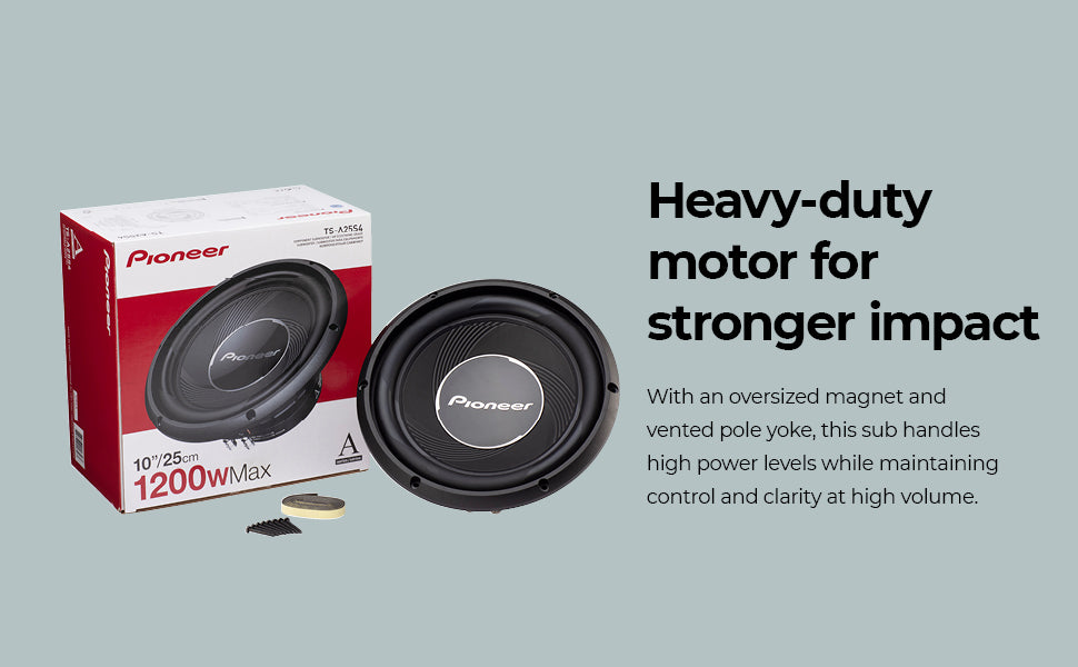 Upgrade to high performance with the Pioneer A-series sound design which acoustically matches the subwoofer and full-range loudspeakers to provide seamless and smooth sound characteristics with dynamic, high impact bass that lets you hear and feel the music.