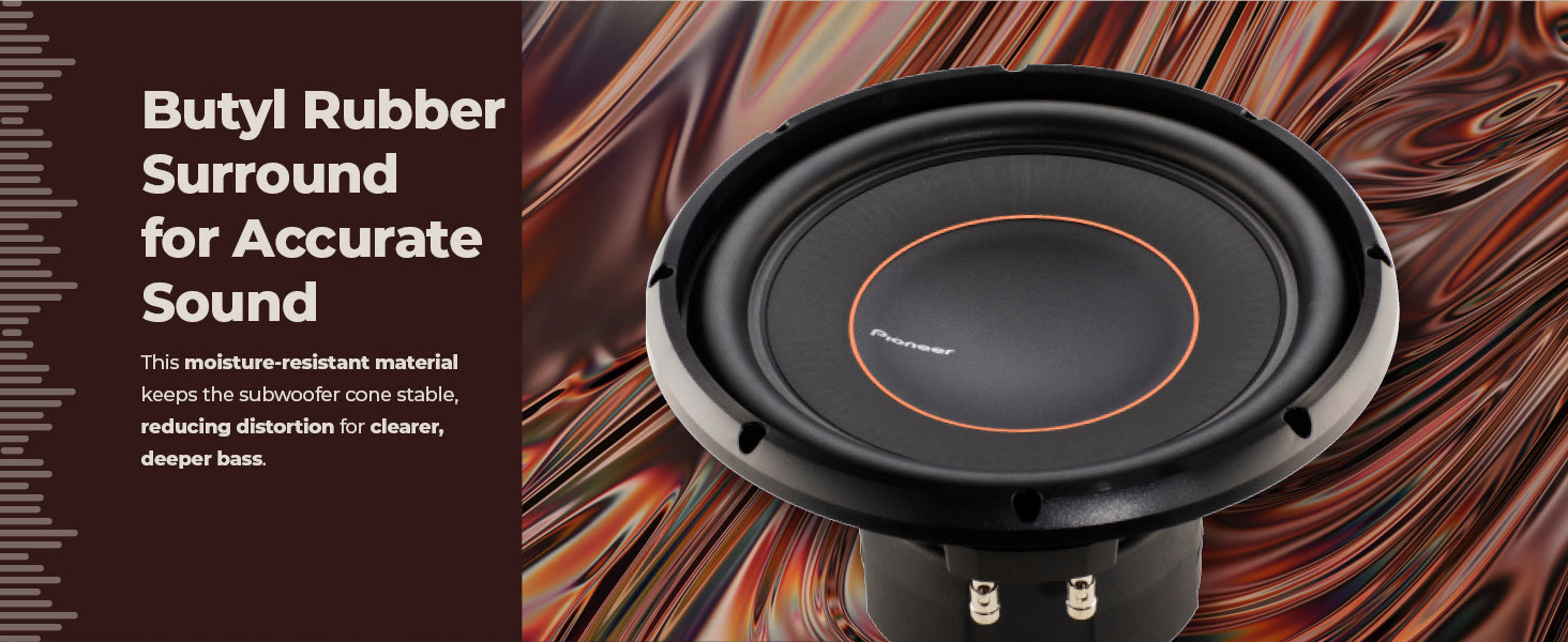 Made from a specially blended, highly durable, and moisture-resistant compound, the butyl rubber keeps the cone moving in a precise linear direction. Not only does it provide greater consistency across various excursions, but it also reduces unwanted vibration from the cone to the basket during signal changes and stops. This results in less distortion and superior bass frequency response.