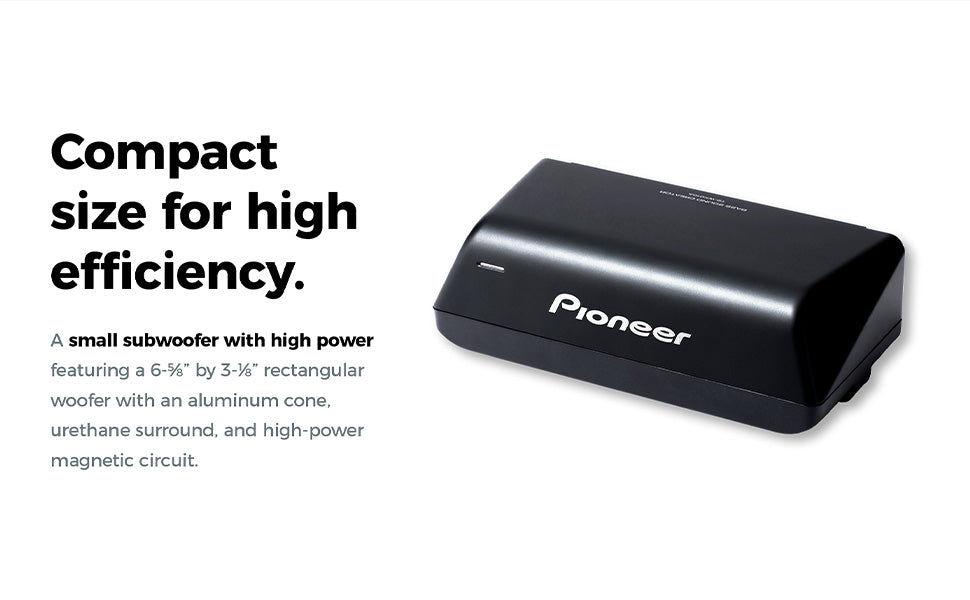 The TS-WX010A features built-in high-efficiency Class-D amplification, offering an ultra-low average current consumption of only 4.2 amps (max). This allows the unit to be installed without the need for heavy-gauge wires to power the internal amplification. In fact, this current consumption is so low that this amplified subwoofer is the ideal solution for adding bass to music in an electric vehicle.